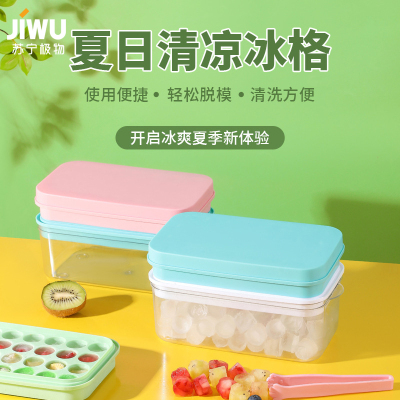 苏宁极物 按压式冰盒 懒人制冰机 冻冰块神器 白色(送冰夹)