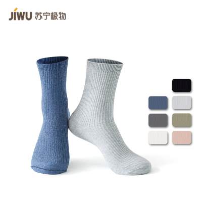 苏宁极物新疆长绒棉男士螺纹中筒袜简约吸汗长筒袜男秋冬纯色条纹潮流长袜男五双装