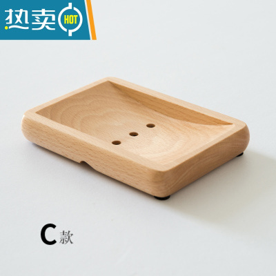 敬平原木创意木质肥皂托盘香皂盒手工皂架实木卫生间厕所沥水肥皂架 C款方形凹槽(能放洗衣皂)