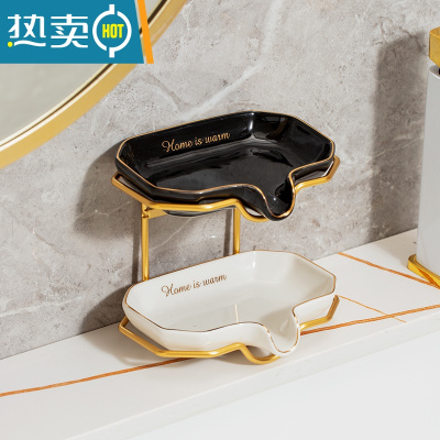敬平肥皂碟肥皂盒北欧香皂盒轻奢风陶瓷家用皂碟沥水浴室卫生间创意 黑色描金[漏嘴]方形皂碟