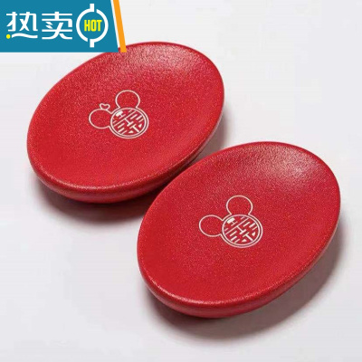 敬平结婚皂盒一对红色陶瓷皂碟新人陪嫁香皂盒中式婚庆送人伴手礼礼物 磨砂米老鼠喜皂碟一对