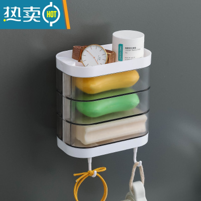 敬平肥皂盒家用卫生间香皂置物架免打孔壁挂式沥水旋转双三层放洗衣皂 三层白色[一格一皂]