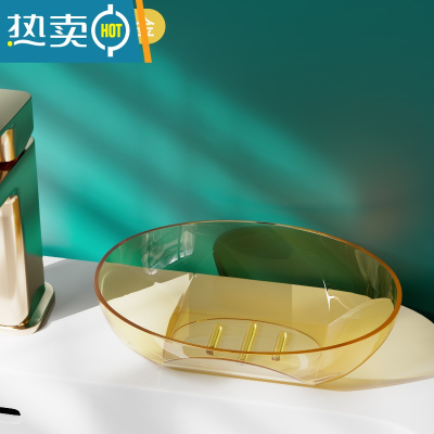 敬平肥皂盒香皂盒家用沥水轻奢卫生间浴室创意皂碟免打孔加大号皂架子 [香槟金]波点凹槽沥水/加大盒身