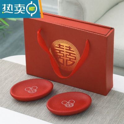 敬平结婚皂盒一对红色陶瓷皂碟新人陪嫁香皂盒中式婚庆送人伴手礼礼物 磨砂米老鼠喜皂碟一对礼盒