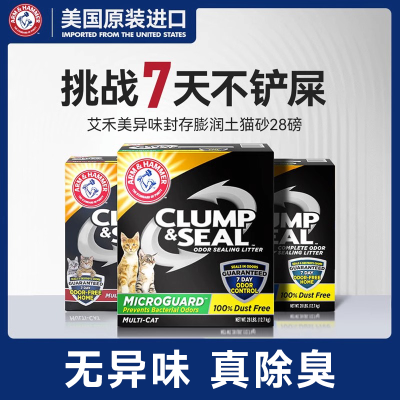 艾禾美膨润土猫砂原装进口28磅铁锤猫咪矿石猫砂除臭12.7kg猫沙黑盒1件装