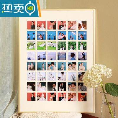 敬平48宫格相框九宫格画框定制情侣照片结婚diy摆台婚纱纪念生日礼物 原木色[铝合金相框] [48宫格]40×50cm+