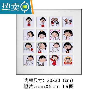 敬平48宫格相框挂墙照片框九宫格洗照片打印实木婚纱框diy宝宝相片 30*30 16张 每张5*5cm 黑胡桃(含照片打