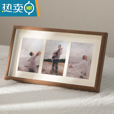 敬平简约创意相框摆台加洗照片四连组合相架情侣婚纱宝宝6寸相片像框 三联咖啡色(可放三张6寸照片10*15cm) 相框+洗