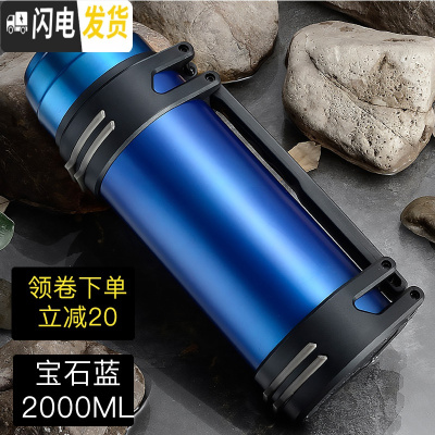 三维工匠保温杯大容量便携保温水壶杯子男旅行保温壶大容量户外车载23 蓝色2000