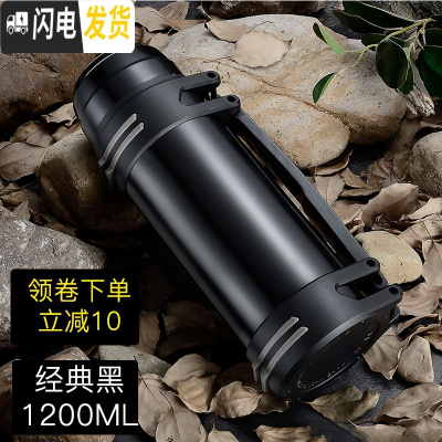 三维工匠保温壶 便携水壶大容量户外旅行壶运动水杯子1200保温杯子 黑色1900