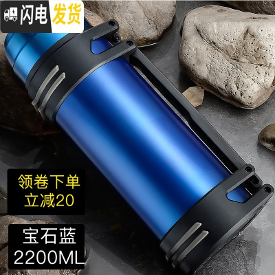 三维工匠保温杯大容量便携保温水壶杯子男旅行保温壶大容量户外车载23 蓝色2200