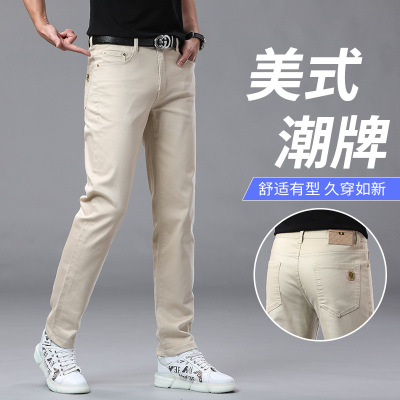 春夏季欧货牛仔裤男修身小直筒休闲弹力纯棉裤子商务休闲百搭