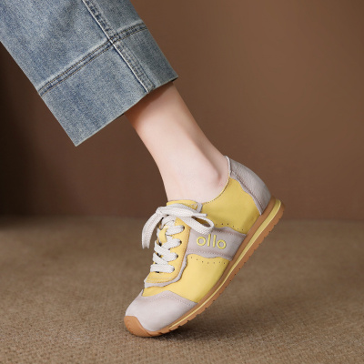 真皮德训鞋女鞋复古运动休闲鞋2026春季新款系带平底百搭单鞋