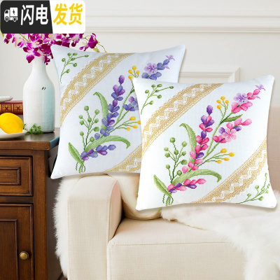 三维工匠十字绣抱枕情侣一对简单枕头套卧室客厅手工自己绣2019新 [埃及长绒棉4股][抱枕一对][无枕芯]46*46cm