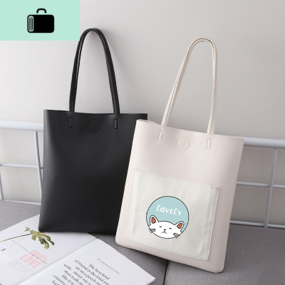 小猫咪印花单肩大包包女包韩版软皮托特包学生百搭简约单肩手提包NEW LAKE女士单肩包