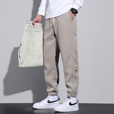 秋冬灯芯绒裤子男年新款宽松浅卡其松紧腰抽绳运动休闲裤