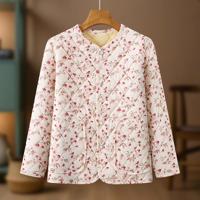 加绒保暖妈妈装洋气中老年洋气冬外套时尚碎花加绒中年衣服花棉袄