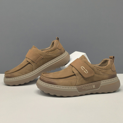 男生头层牛皮男款百搭潮鞋欧洲站真皮一脚蹬懒人鞋魔术贴休闲鞋男