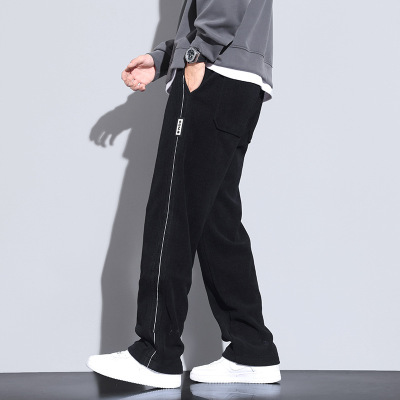 时尚百搭秋冬新款男士休闲裤保暖加绒青年直同宽松舒适长裤男