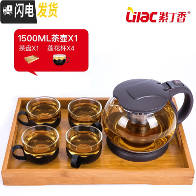 三维工匠耐热玻璃泡花茶壶套装家用泡茶壶花茶茶具套装带过滤茶具杯子 圆壶600+熊时代黑+4小资杯