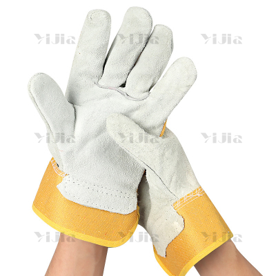 翌嘉YJ40621009焊工手套耐磨防滑黄布二指全掌牛皮电焊手套加厚防护劳保手套