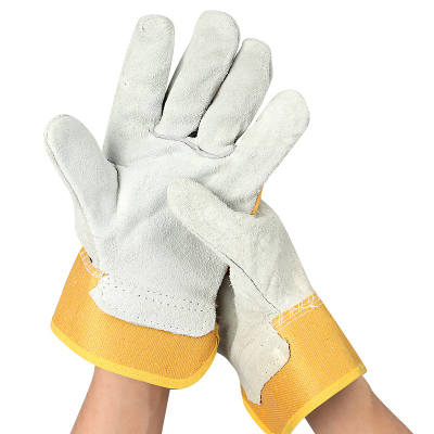 翌嘉YJ5121716焊工手套耐磨防滑黄布二指全掌牛皮电焊手套加厚防护劳保手套(12双)