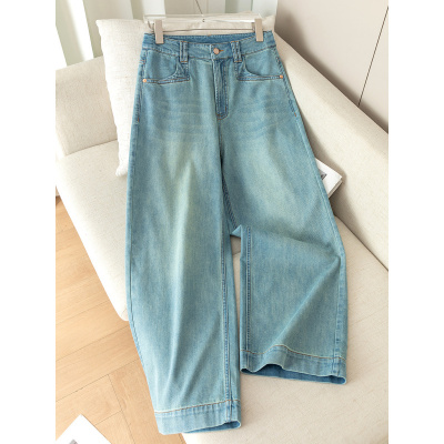 年夏季薄款浅色九分牛仔直筒裤女宽松韩版垂感阔腿裤