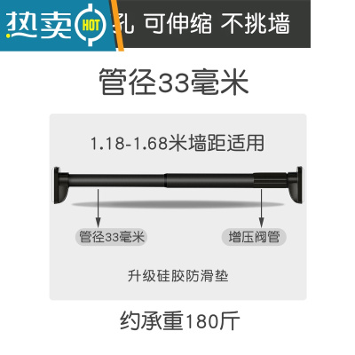 敬平免打孔阳台伸缩晾衣架家用杆式飘窗挂衣服晒被子器室内凉衣杆子 [黑色方头加粗杆]1.18-1.68米间距适用晾衣杆
