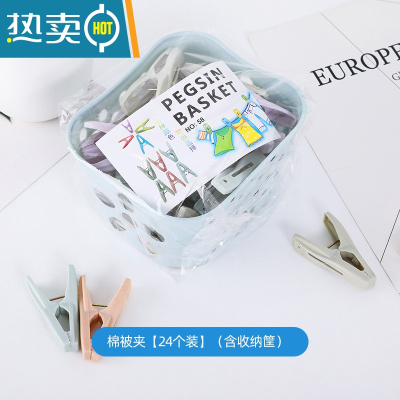 敬平家用晒被晾衣夹晾晒棉被夹固定大号防风被单夹子塑料防风夹晒衣夹 棉被夹[24个装](含收纳筐)