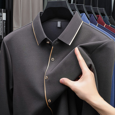 新款男士春秋季无痕含羊毛男衬衣男寸衣男休闲纯色翻领衬衣