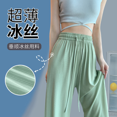 冰丝阔腿裤女夏季薄款新款小个子休闲高腰垂感窄版直筒凉凉裤