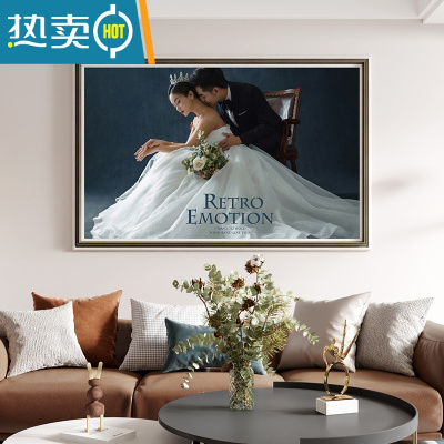 敬平定制婚纱照相框放大挂墙洗照片加全家福相片打印主结婚照挂画制作 亚麻灰 48寸(75*120cm 横竖通用)