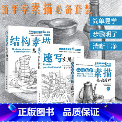 [正版]套装3册从零起步素描基础教程+结构素描基础教程+速写实用教程 铅笔画临摹静物风景石膏头像绘画素描技法入门自学