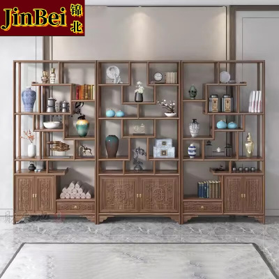 锦北博古架多宝阁茶叶架子新中式客厅办公室隔断置物架大团圆博古架