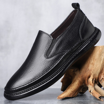 夏季男鞋真皮便士乐福鞋男商务英伦休闲皮鞋黑色一脚蹬豆豆鞋大码
