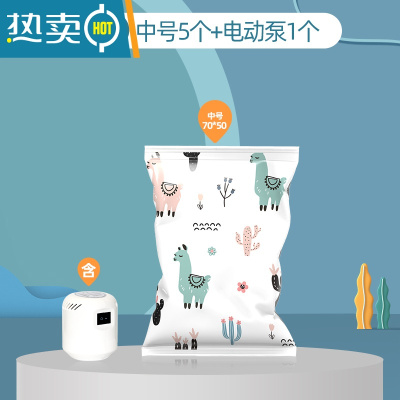 敬平真空压缩袋行李箱专用衣服电动泵家用被子羽绒服抽压缩收纳袋家用 6件套[中号5个+电动泵1个] 一年漏气包退换[羊驼款