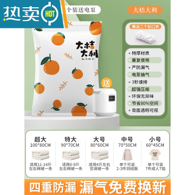 敬平真空压缩收纳袋衣服被子装棉被电动泵抽空气家用打包衣物加厚袋子 2个+送电泵 超大号(100*80cm)压缩袋