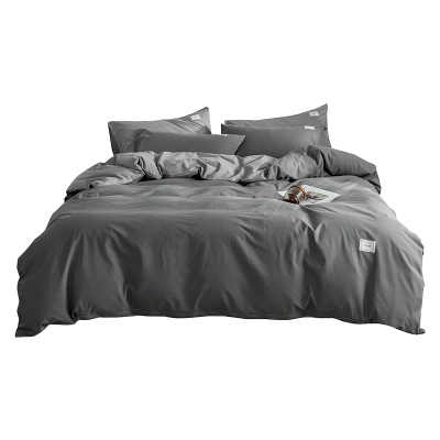 美帮汇床单被罩四件套北欧风格全棉全棉简约水洗棉男生潮流被套三件套灰