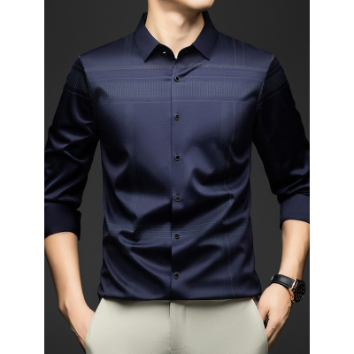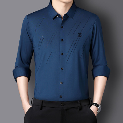 冰丝凉感薄款长袖衬衫男式春秋季新款简约休闲印花弹力男式衬衣