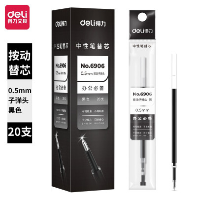 得力(deli) 6906 0.5mm黑色中性笔笔芯 水笔签字笔替芯 20支/盒 黑色 2盒装
