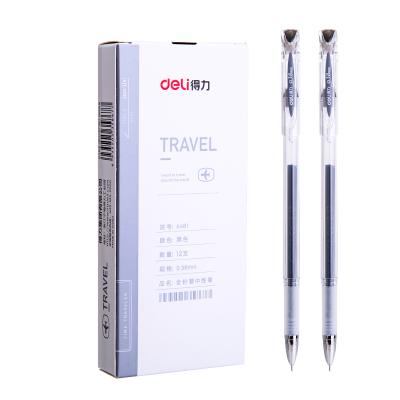 得力(deli)A481中性笔 大容量中性笔0.38全针管 黑色12支/1盒