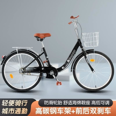 自行车女式24寸26寸普通轻便学生青少年脚踏男士代步通勤单车