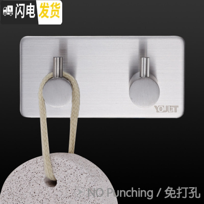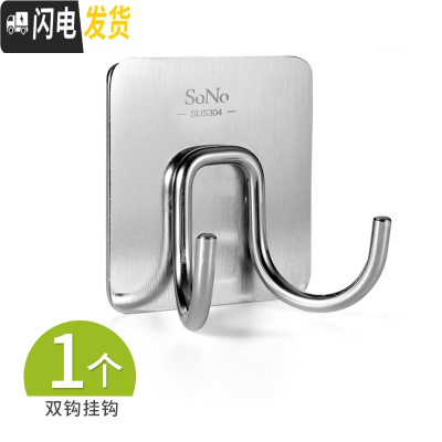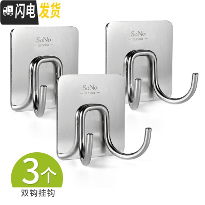 三维工匠挂衣钩不锈钢排钩卫生间强力粘钩浴室墙壁挂免打孔毛巾挂钩 方形双钩