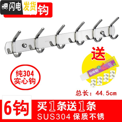 三维工匠304不锈钢衣钩挂衣钩壁挂勾排钩衣帽钩浴室卫生间厨房免打孔挂钩 304双钩6钩[送同款]