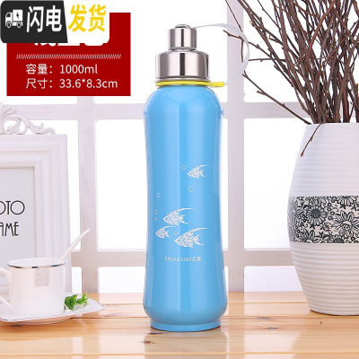 三维工匠304不锈钢大号保温杯大容量保温壶600太空壶800户外运动瓶1000 1000蓝色
