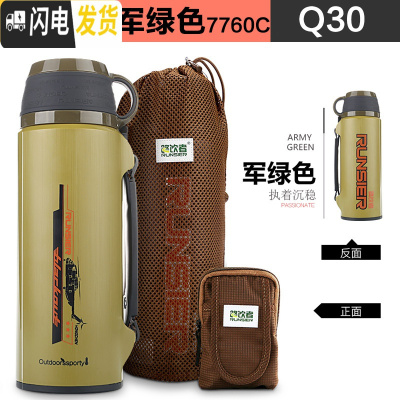 三维工匠保温壶不锈钢大容量真空旅行壶大号男女便携运动水壶户外 2000[军绿色]