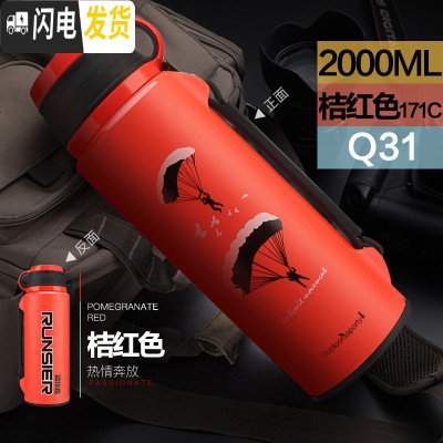 三维工匠保温壶不锈钢大容量真空旅行壶大号男女便携运动水壶户外 2000[桔色]