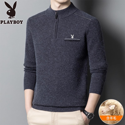 花花公子秋冬季新款加厚毛衣男半高领中年爸爸装含羊毛针织打底衫