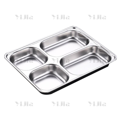 翌嘉YJ40625029 304不锈钢分格餐盘食堂中式饭盘 浅四格