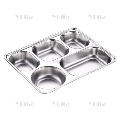 翌嘉YJ40625031 201不锈钢分格餐盘食堂中式饭盘 浅五格